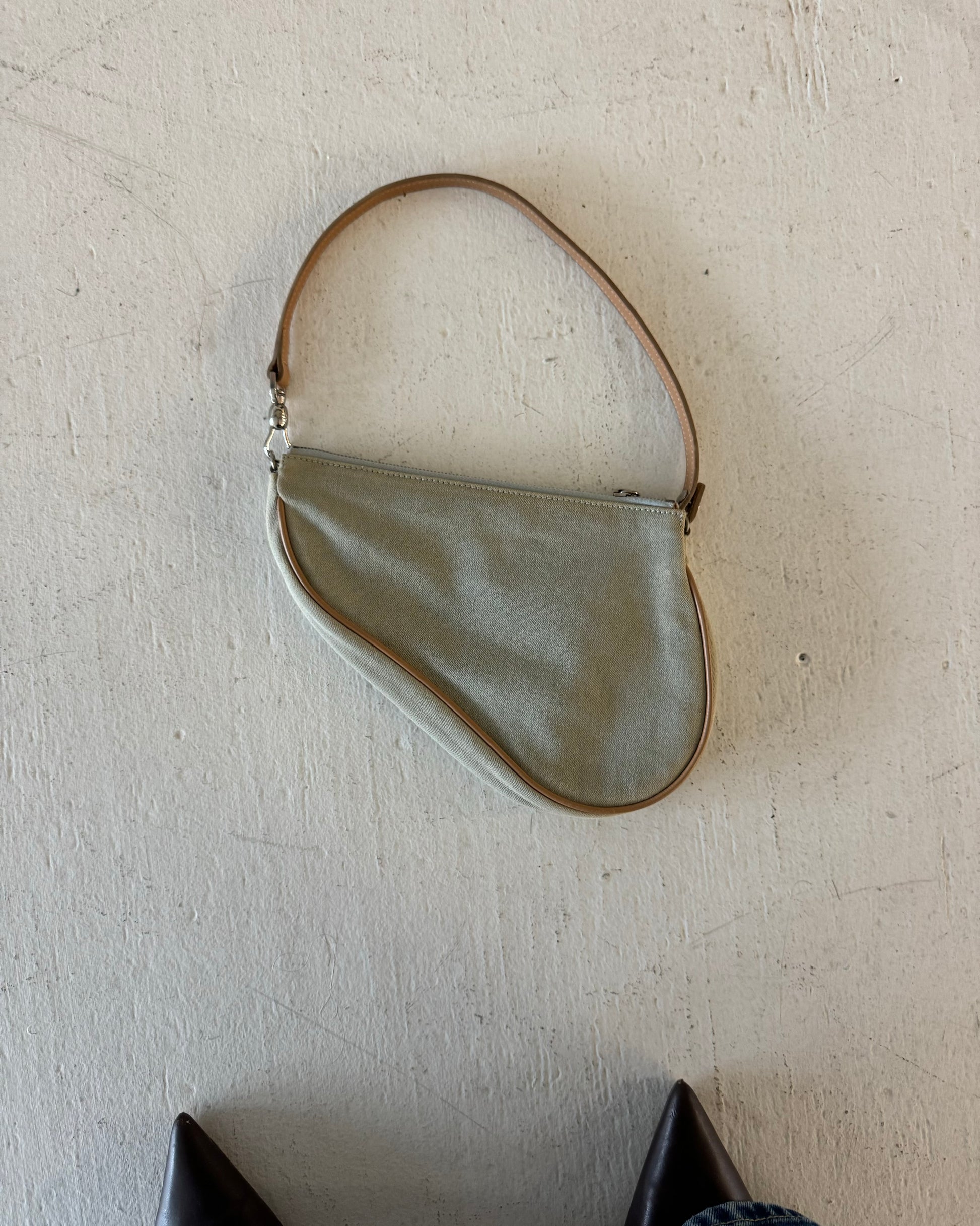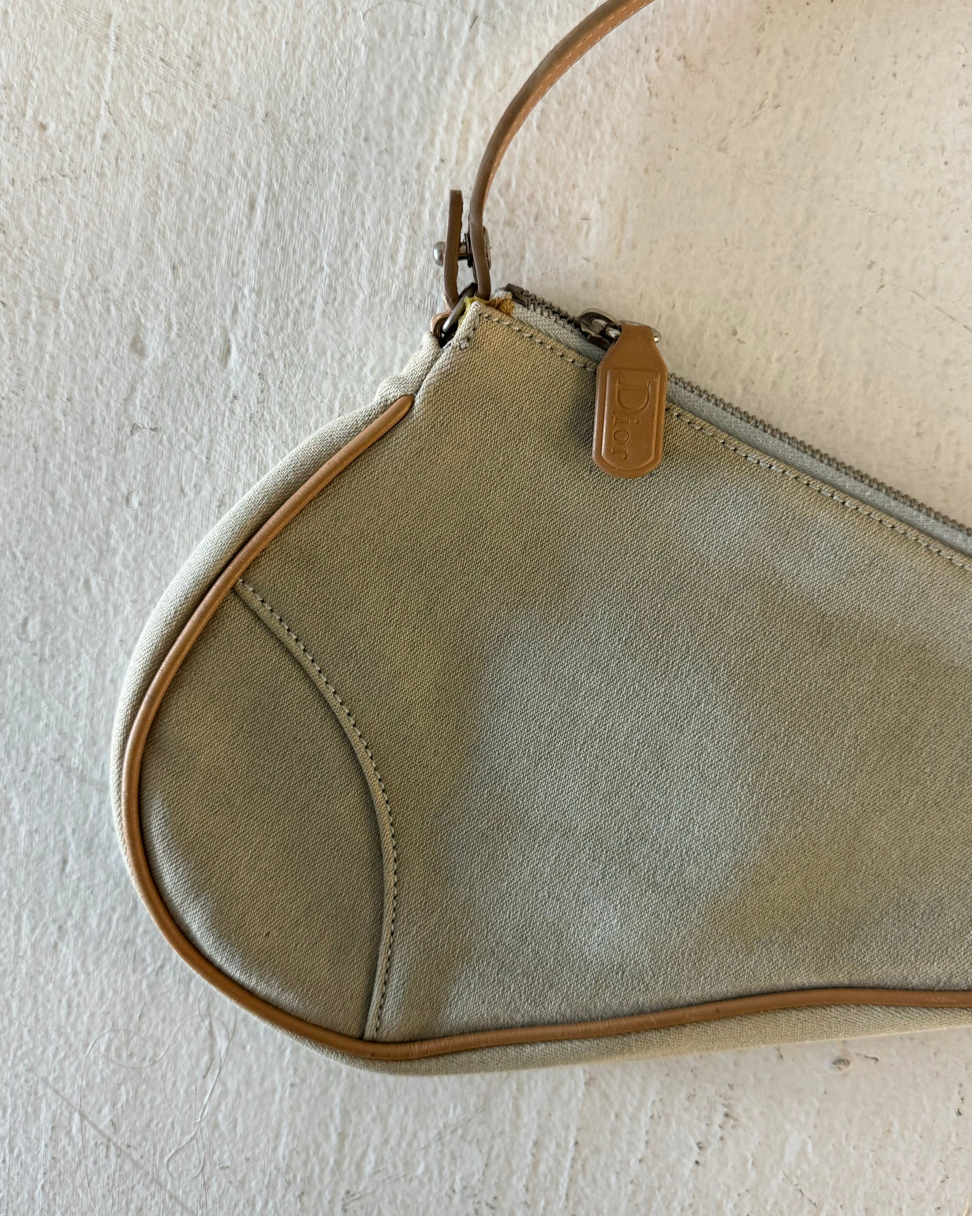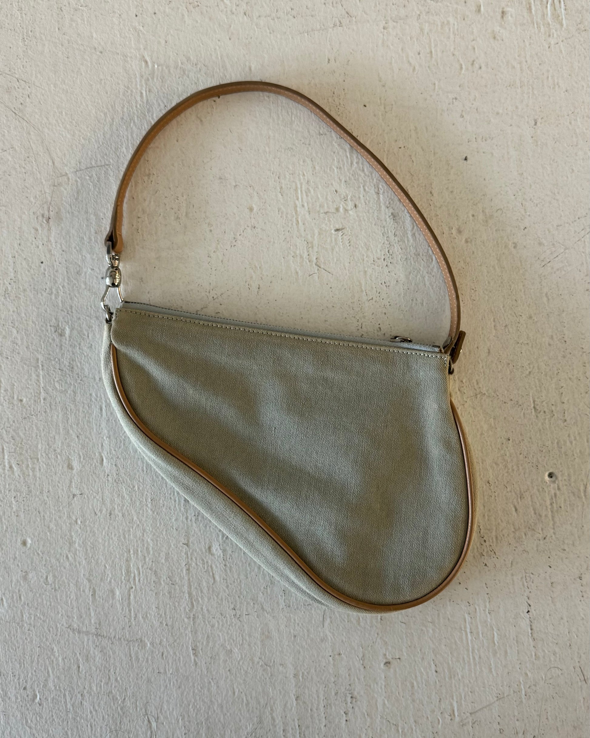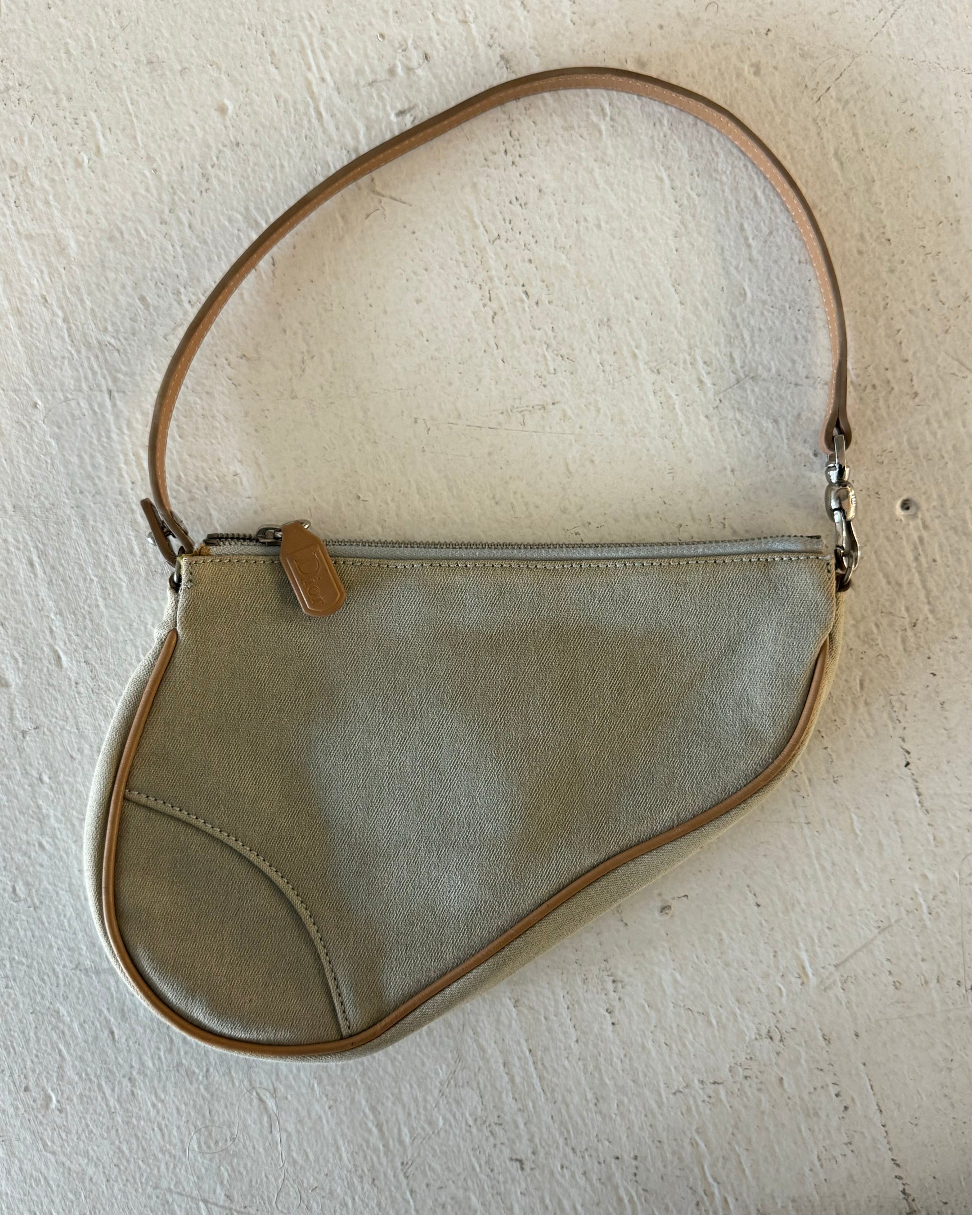 in near perfect vintage condition... denim canvas exterior and satin green interior