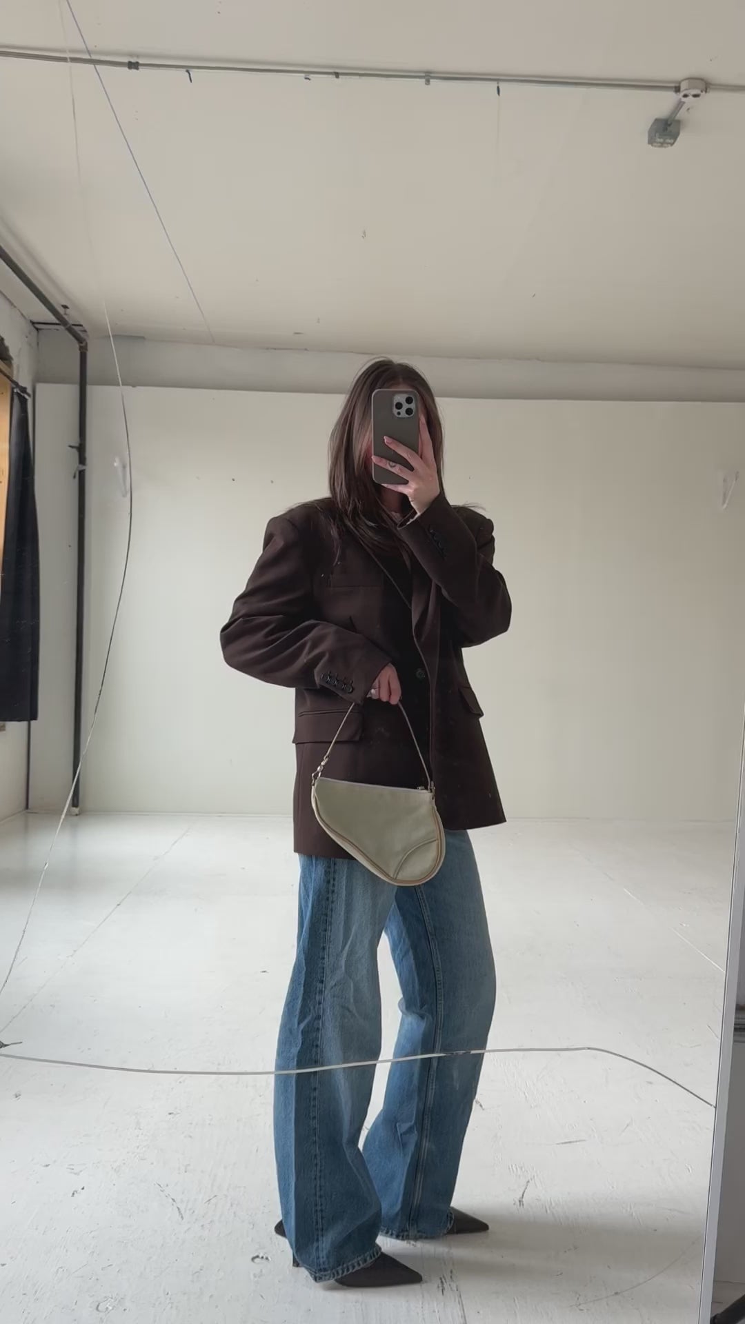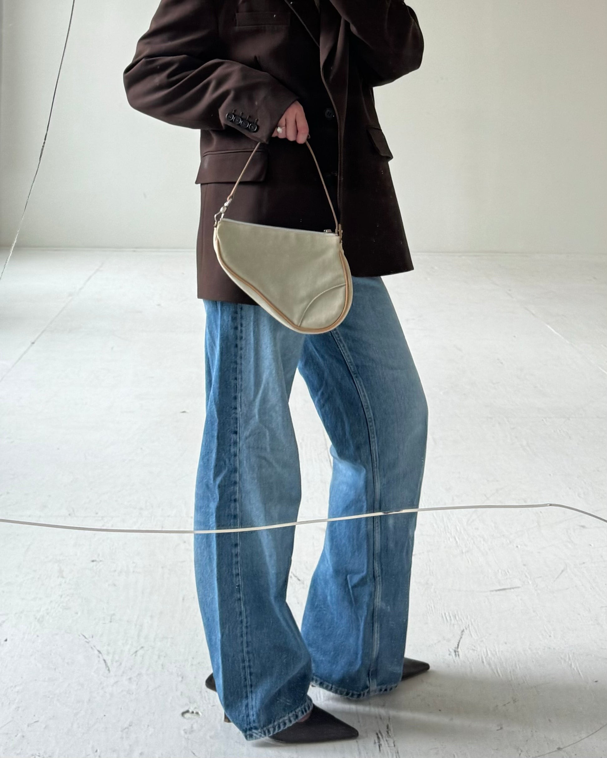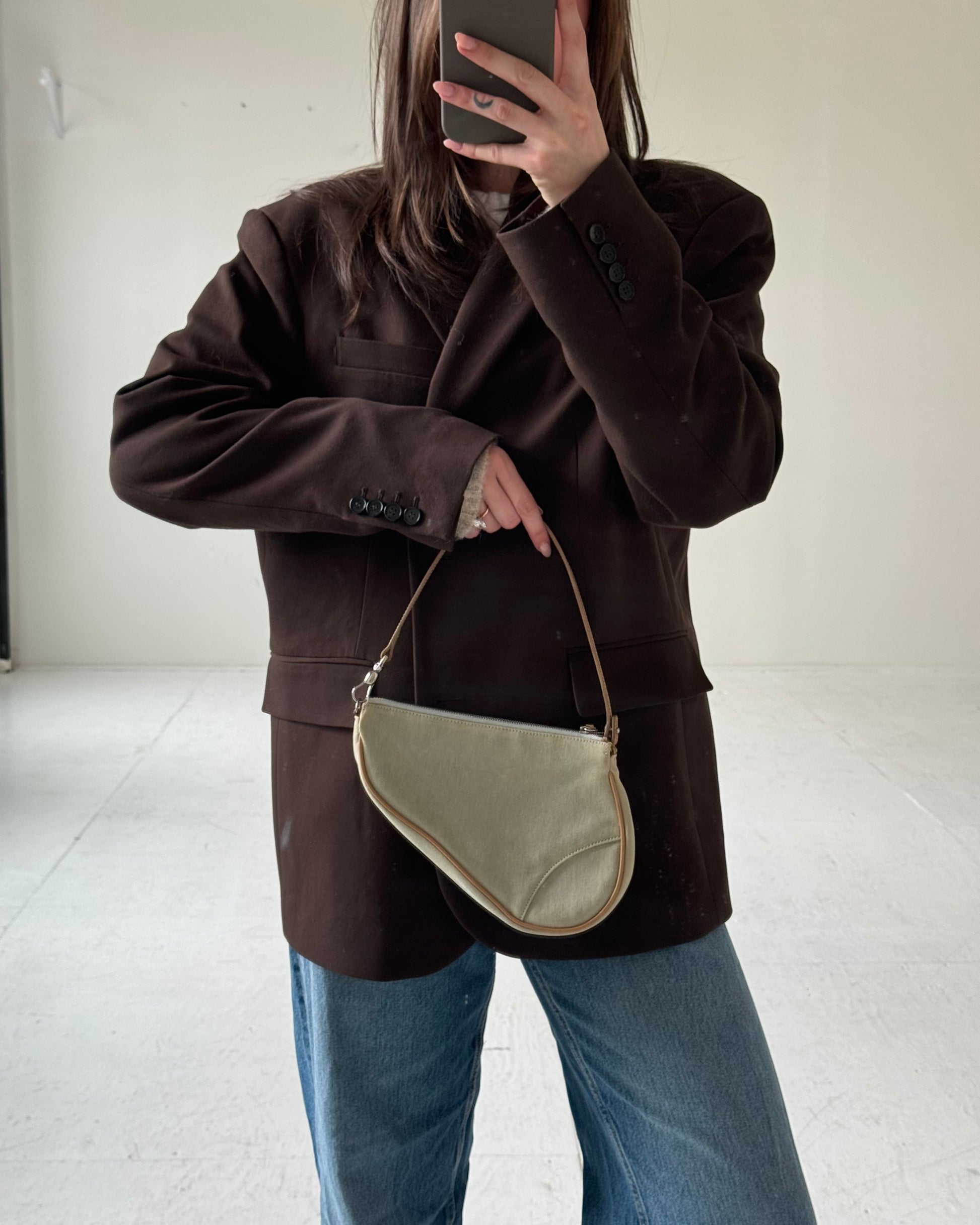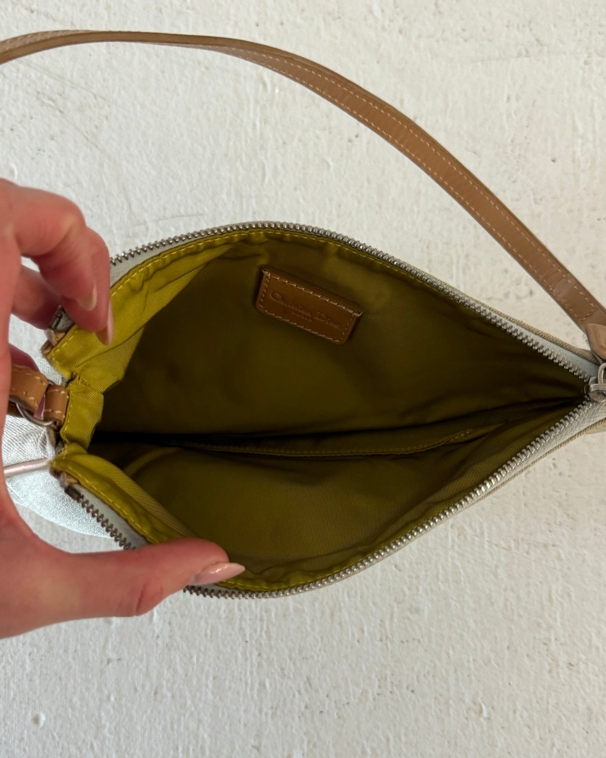 in near perfect vintage condition... denim canvas exterior and satin green interior